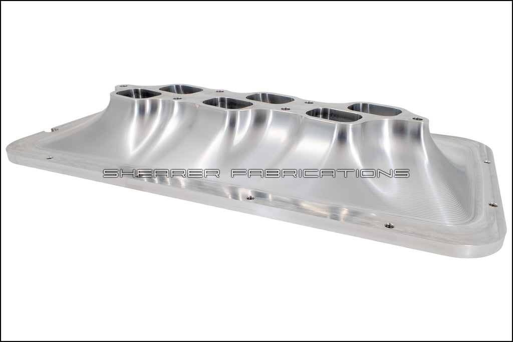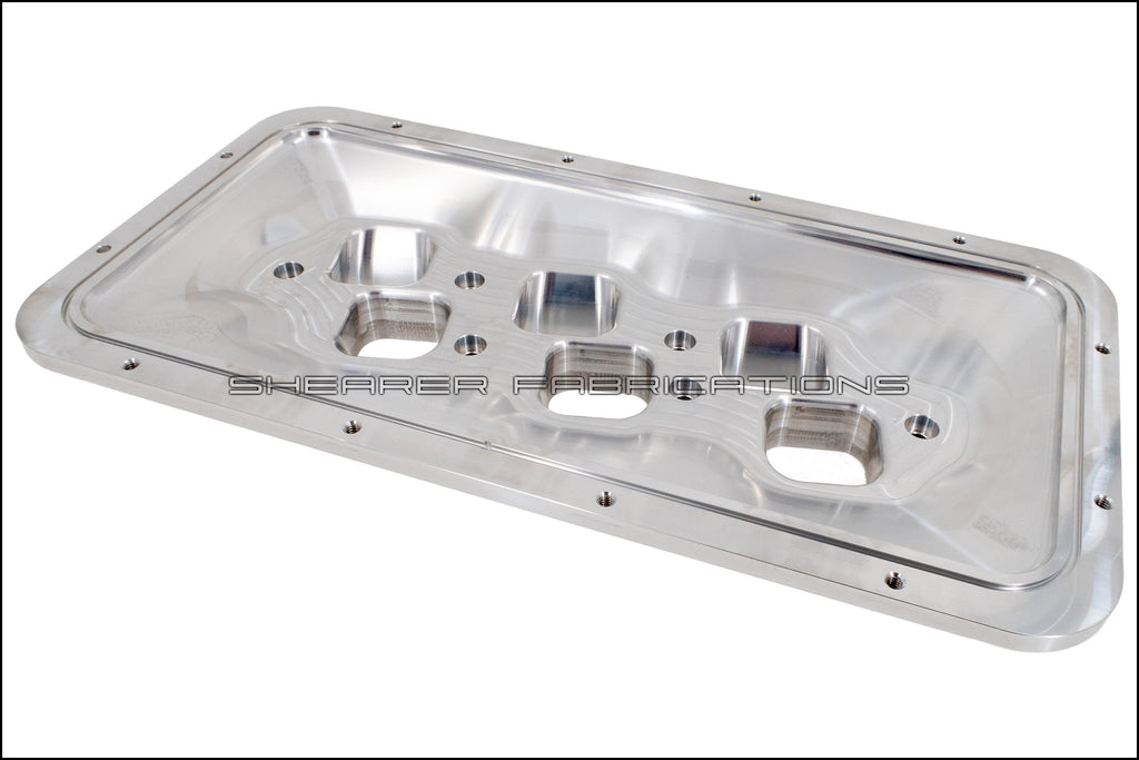 This billet adapter is cut from a 2.5" thick chunk of aluminum. Meant to adapt a HiRam Intercooler, or Sheetmetal Lid, to your 1GR-FE OE lower intake manifold.