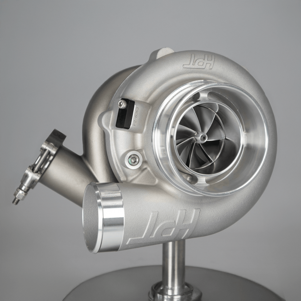 Alongside the bearing system, HPT turbochargers boast superior aerodynamics with lightweight rotating groups. This combination of low-resistance bearings and optimized airflow allows for a larger turbo size without sacrificing transient response.
